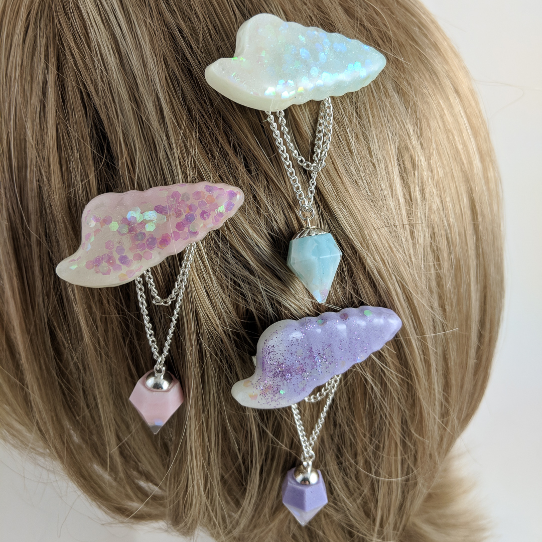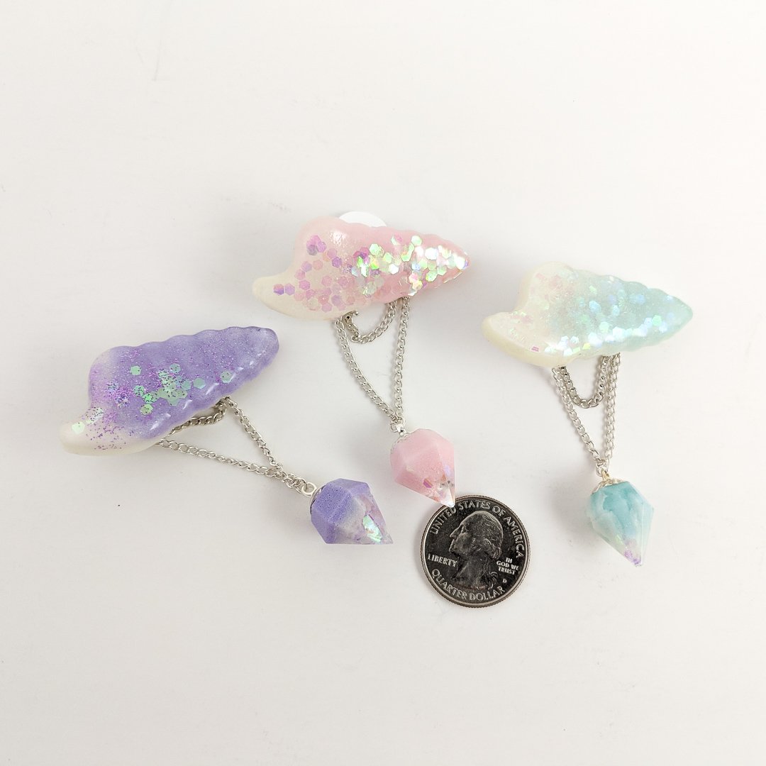This handmade hair clip looks like an auger shell made from glitter in high gloss resin. A perfect accessory to complete your mermaid look.