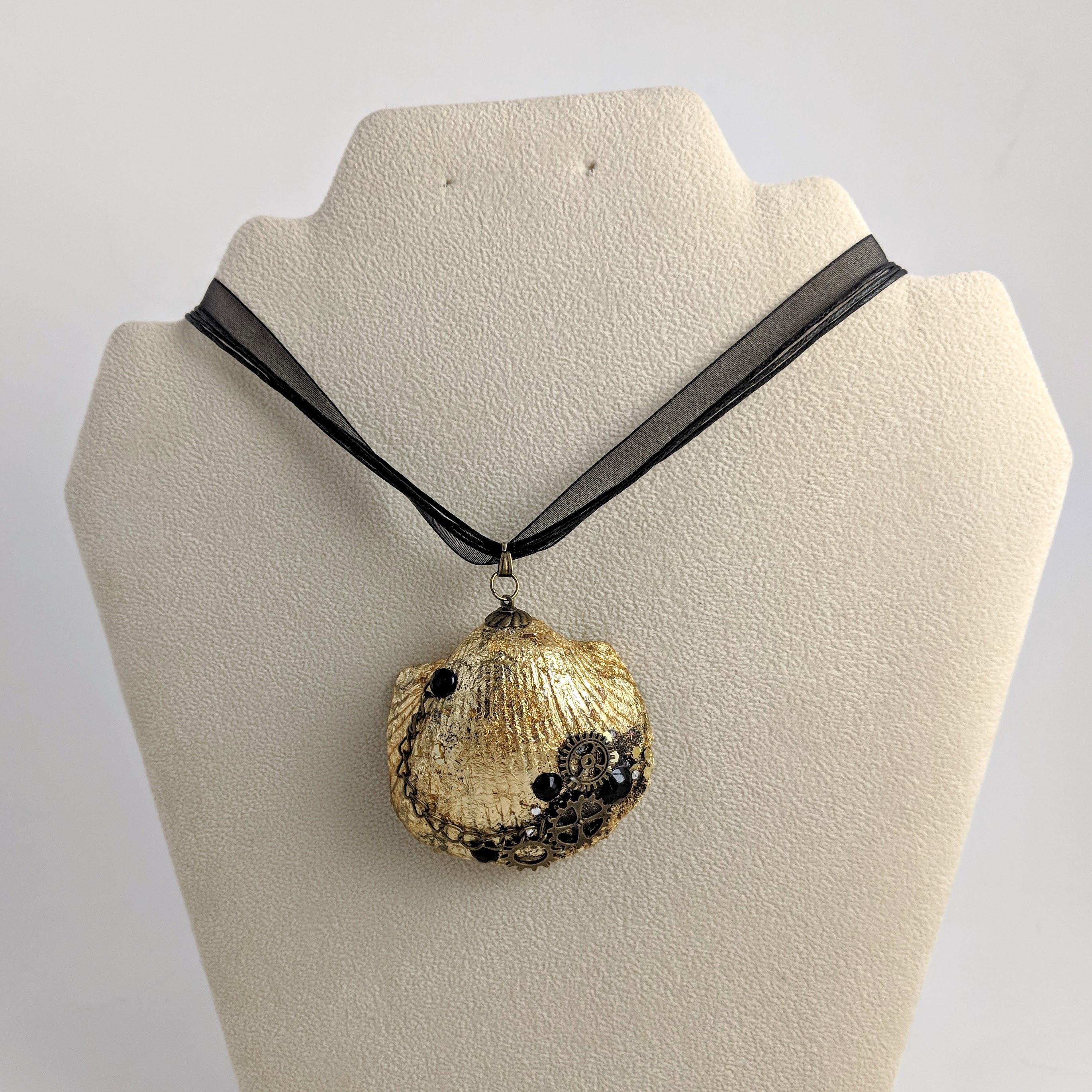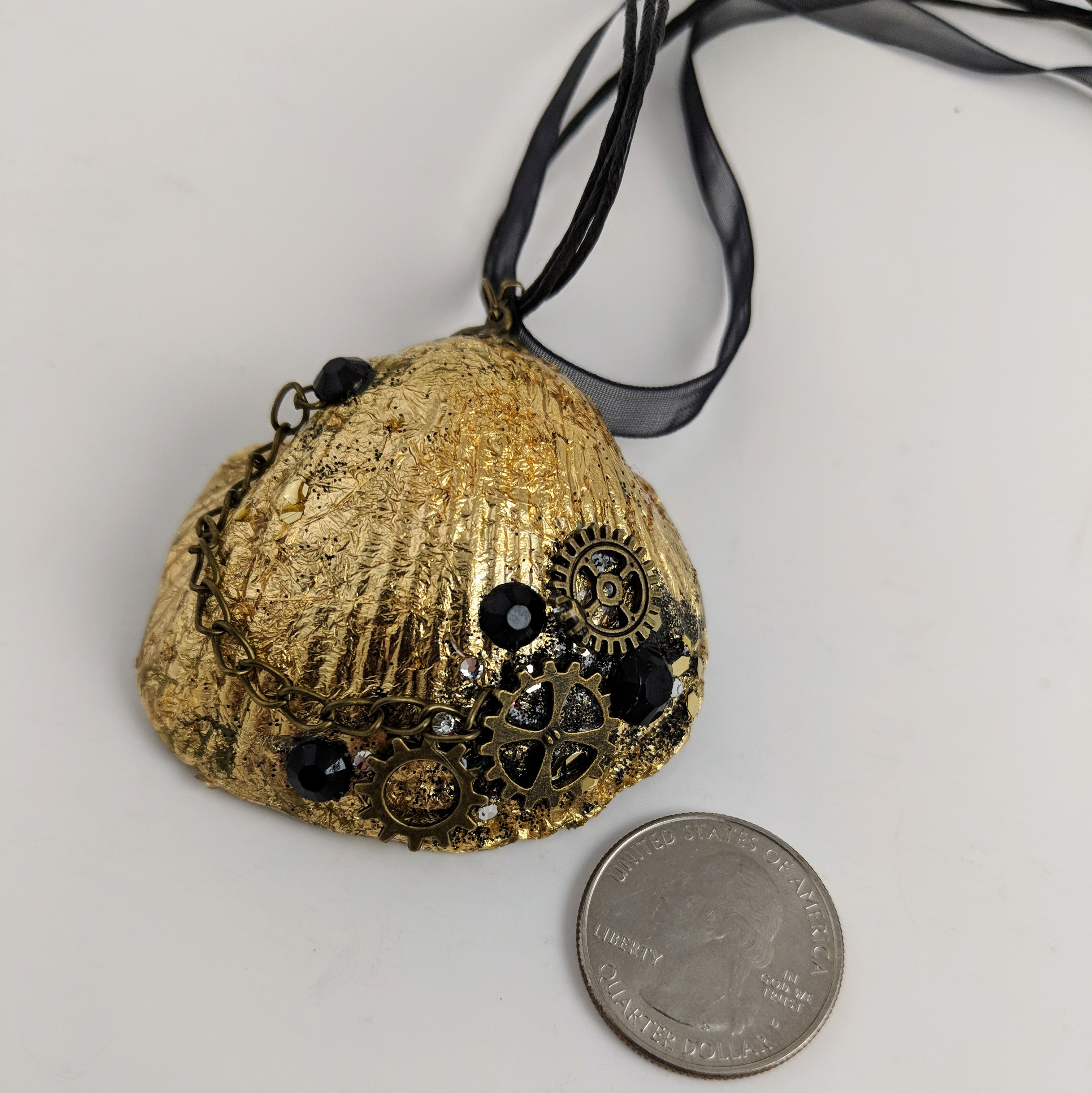 This classy steampunk necklace is made from real shell, gold-leafed and finished with a coat of high gloss resin. Great gift for your favorite airship captain!
