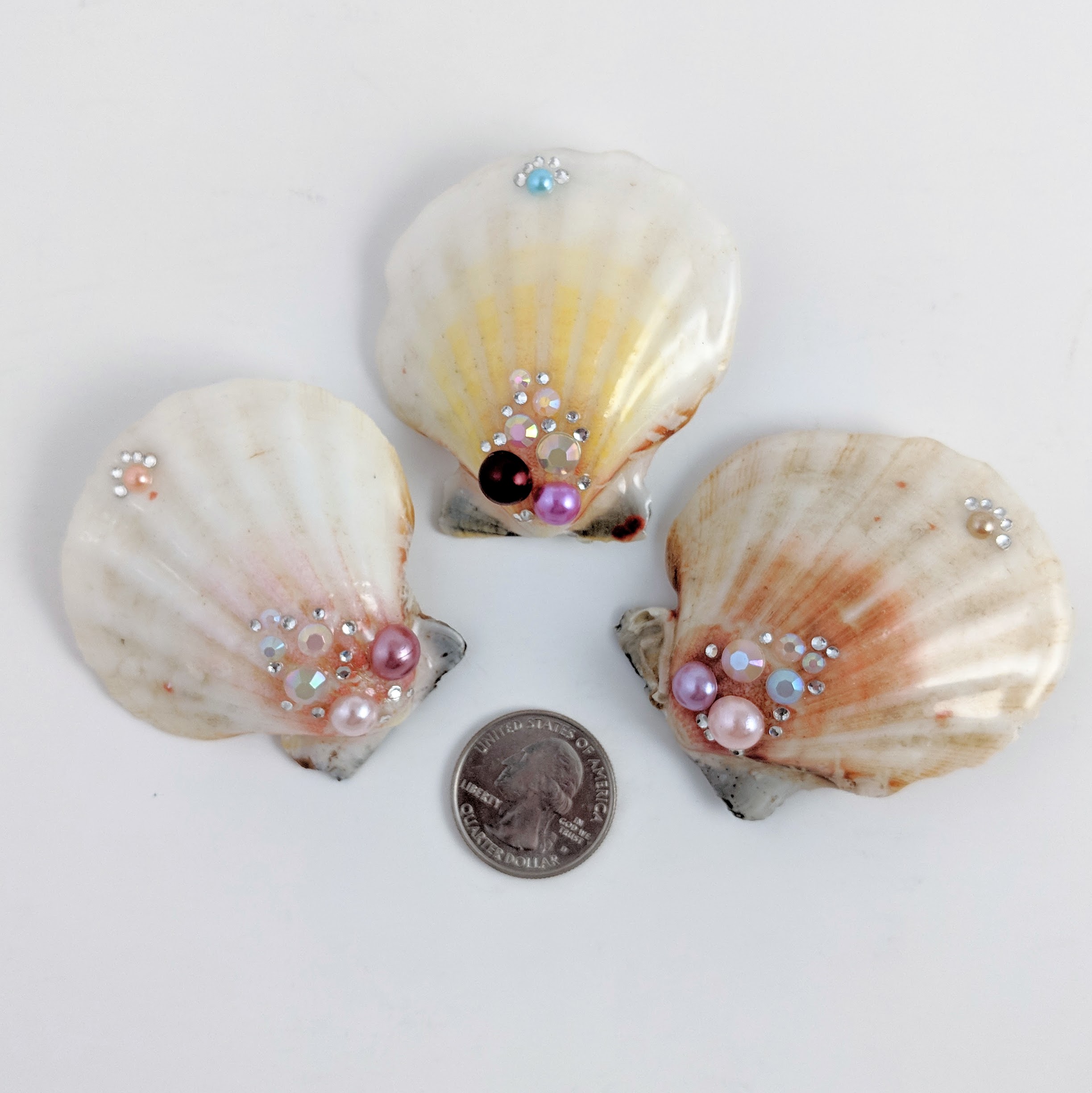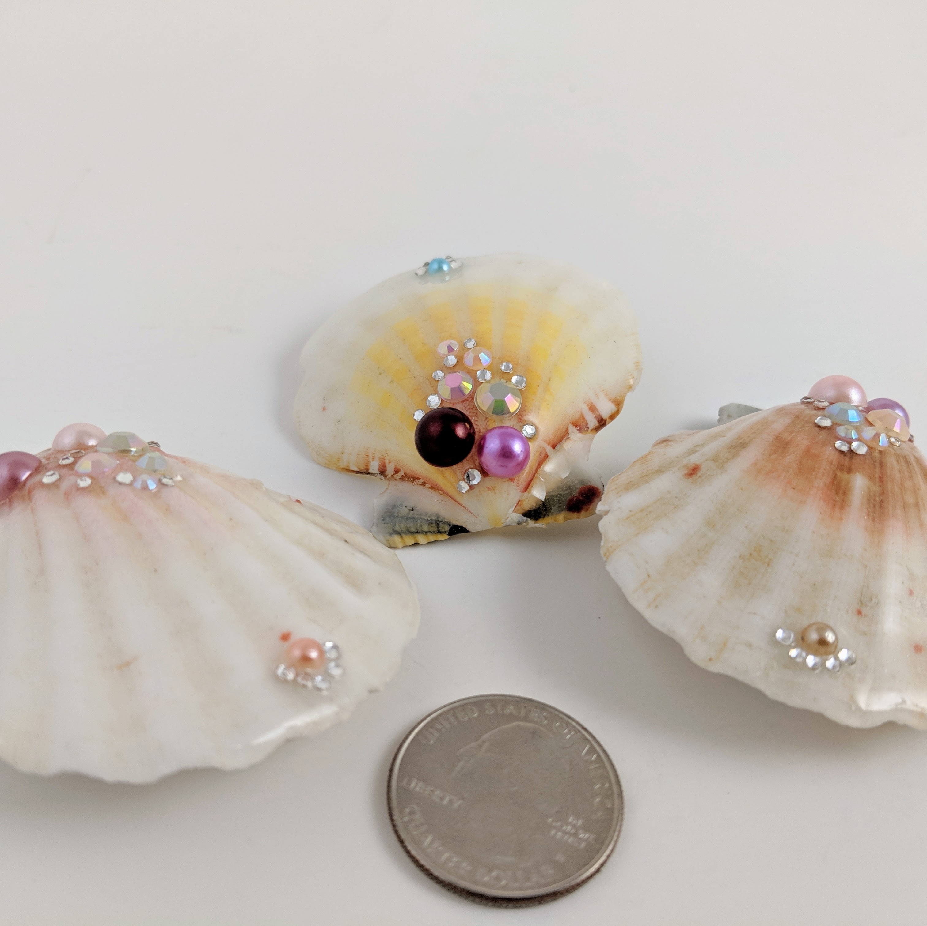 This decorated hair clip enhances the natural beauty of a real shell. It is coated in high gloss resin. It's the perfect addition to any marine-themed look.